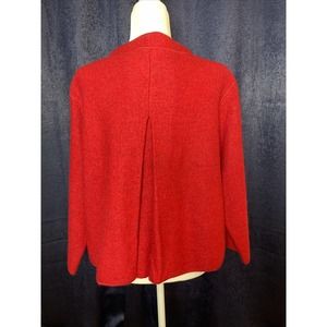 Ruby Rd. Red Wool Zip Up Cardigan Jacket Blazer L Large Woman’s Floral Pockets