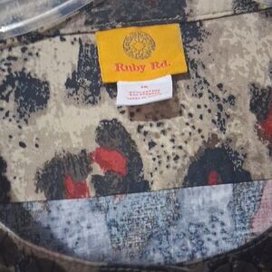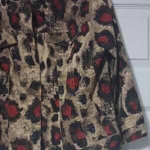 Ruby Rd. Red and Beige Animal Print Jacket