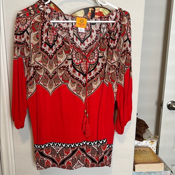 Ruby Rd. Red and Black Patterned Blouse