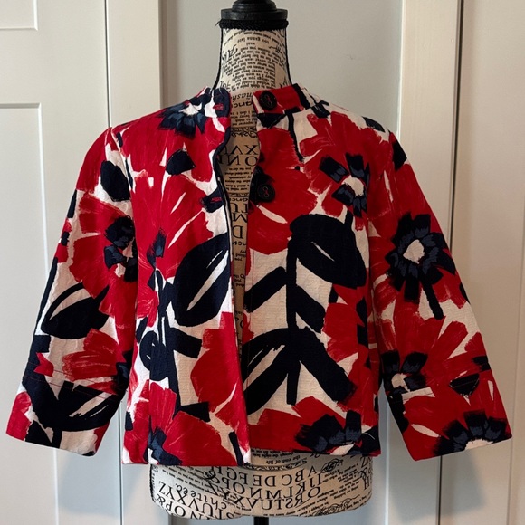 Bold floral design. Striking red and navy colors. Perfect for adding flair.