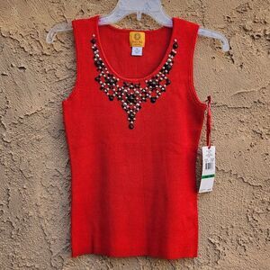 Ruby Rd Red Beaded Ribbed Tank Top