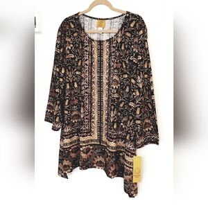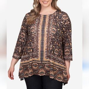 NWT Ruby Rd. Plus Size Blocked Bandana Paisley Sharkbite Tunic Top. Size 3X. Smoke free home.
