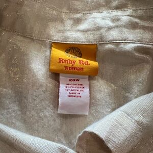 NWOT Ruby Rd Shiny Button Down Shirt. Size:20W. Has never been worn, fantastic condition. If you have any questions, please ask! Smoke and pet free home. Happy poshing!