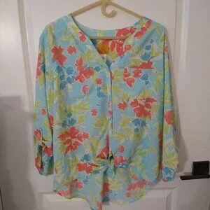 Ruby Rd. Shirt Lightweight Ties at bottom front Button down Pretty colors Good condition A7
