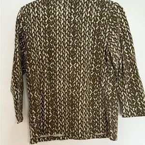 SIZE: PM Quarter sleeve top featuring a unique pattern and a gold beaded neckline. Smoke Free/Pet Free Home