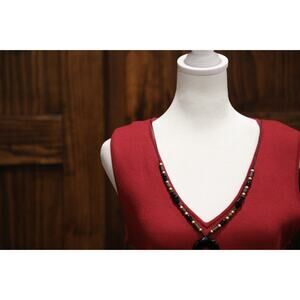 Ruby Rd Shirt Women Large Red Maroon Sleeveless Ribbed Tank With Necklace Boho