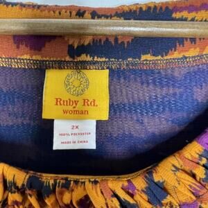 Ruby Rd Shirt Womens 2XL Orange Black Animal Print Pullover 3/4 Sleeve Stretch Top