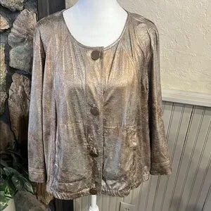 Elevate your wardrobe with this elegant silver jacket from Ruby Rd., featuring a relaxed fit and buttoned front. The long sleeves and soft fabric ensure comfort and style for any occasion.