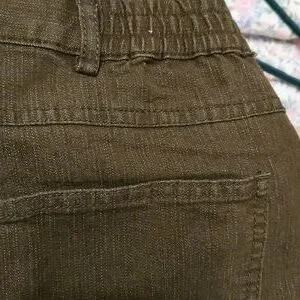 Ruby Rd. 76% cotton 23%poly. 1%spandex size 10 brownies greenies color jean with elastic on each side in the back zipper front. very comfortable.