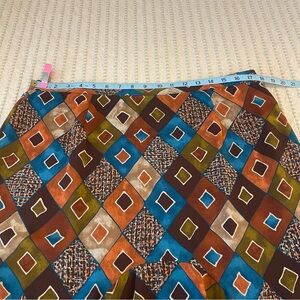 Chic skirt with a bold diamond design. Features a mix of earthy tones and vibrant accents. Ideal for a standout look.