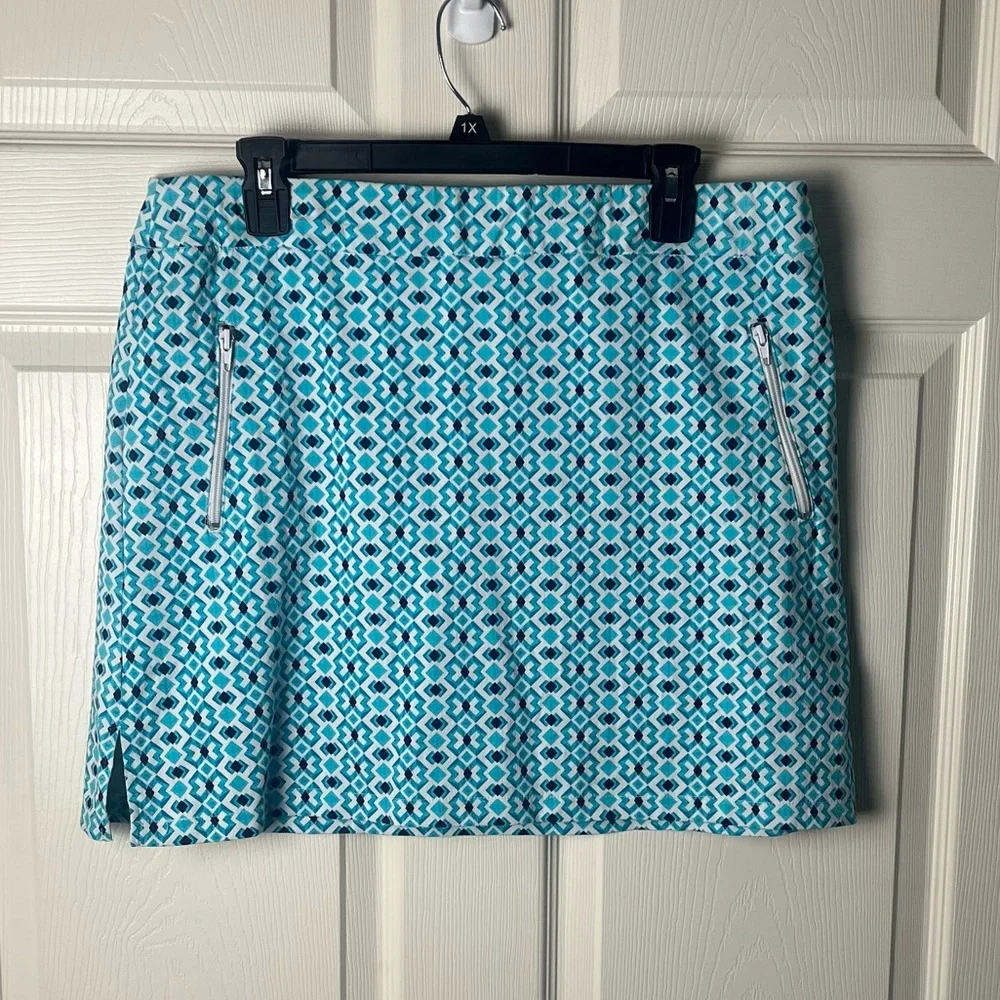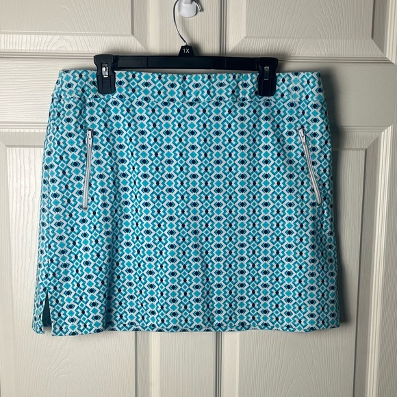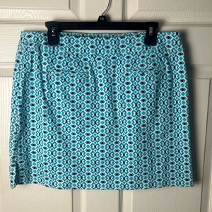 This vibrant blue skort is perfect for casual and resort wear. Featuring a lightweight fabric with a modern geometric pattern, it offers a fresh and contemporary look.