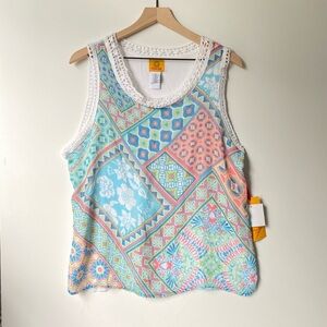 Ruby Rd Sleeveless Mulitcolor Print Tank Top Size L, NWT