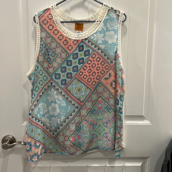 Ruby Rd. Sleeveless Patchwork Shell size 2X