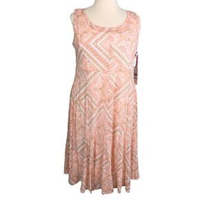 Ruby Rd Soft Shift Godet Midi Dress Size 1X Boat Neck Sleeveless Peach NWT