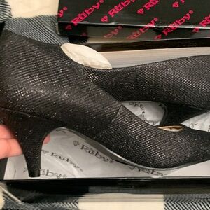Chic and stylish black heels with a shimmering finish. Ideal for adding elegance to any outfit.