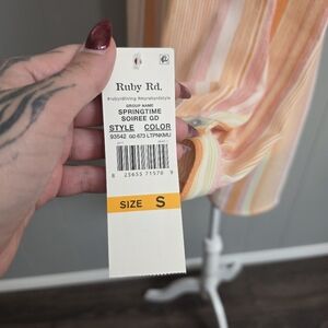 these is a fun and comfy Ruby Rd. springtime stripe button up sleeve top. great for school, work, outdoor activities, events, occassions, seasons, vacations, ect. 100% polyester. wash cold gentle, tumble dry low. brand new with tags, in great condition ✨️