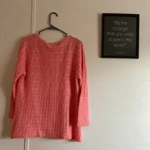 Barely worn sweater, super comfy. Flaws: pictured in last 3 photos - are not super noticeable. Color Specification: Coral