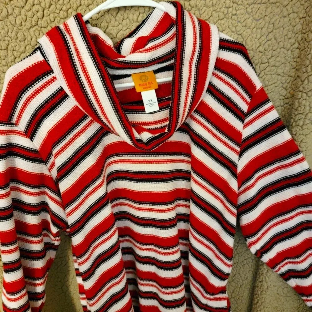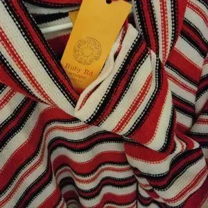 Beautiful Rudy Rd sweater, brand new w/ original tags, Red, black and white striped with a loose Cowl turtle neck. MEDIUM size