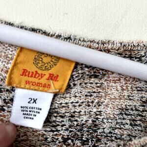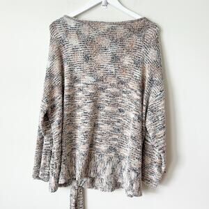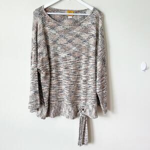 Ruby Rd Sweater Size 2X Bell Sleeve Tie Front Scoop Neck Tan Variegated Knit