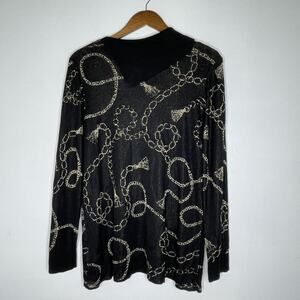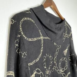 Ruby Rd. Sweater Womens Large Black Gold Metallic Chain Print Long Sleeve Pullover