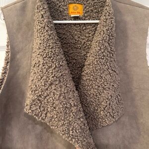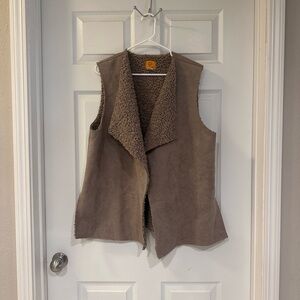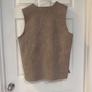 Cozy tan vest with a textured finish. Ideal for layering.