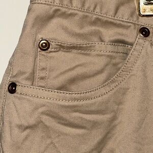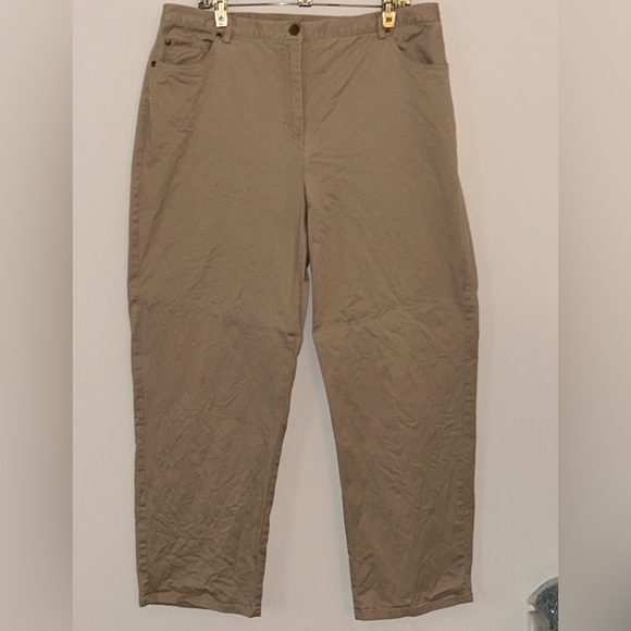 The Five Pocket Pants are perfect for casual occasions with a high-rise, flat front design. Made from comfortable cotton fabric, these pants feature a straight leg style with a 29-inch inseam. The beige color and chino style make them versatile for wearing in the summer, fall, and spring seasons. With a waist size of 36 inches, these pants are machine washable for easy care and offer a regular fit for a comfortable and flattering silhouette.