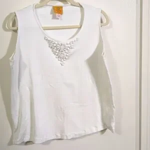 Ruby Rd. White tank top with white bead embellishments on front. Great condition. Size 2X. Super stretchy! 21" p2p.