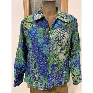 Ruby Rd. Tropical Watercolor Theme Zip Up Jacket