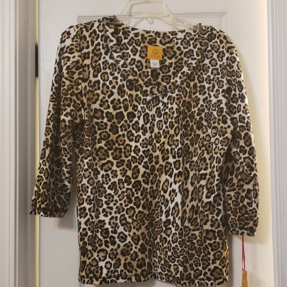 Animal print top with 3\4 quarter length sleeves.