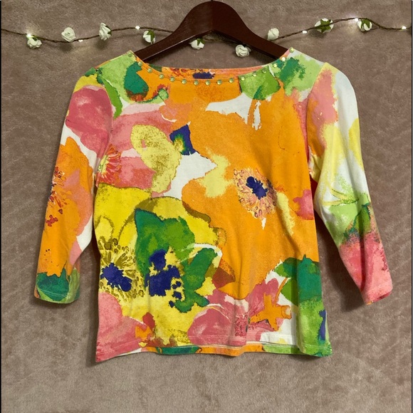 Ruby Rd Top. 95% Cotton 5% Spandex.