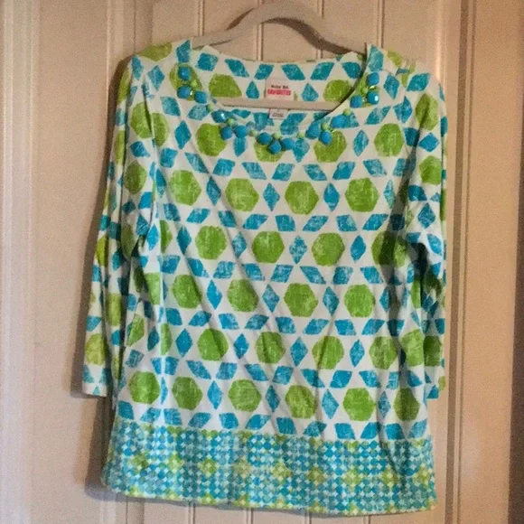 Never worn Ruby Rd top with pretty beads on neckline in size large.