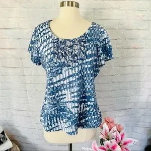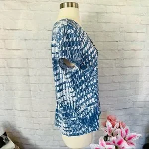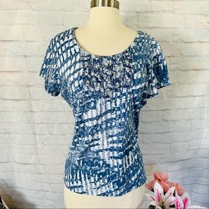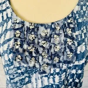 ๐ Features: Blue & White Design All Over, Round Neckline, Bead & Sequin Design On The Front