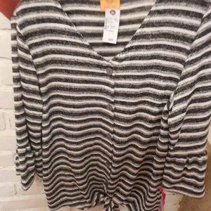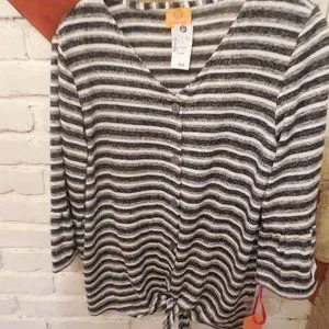Pretty black & white top with ties at waist. Extra button.