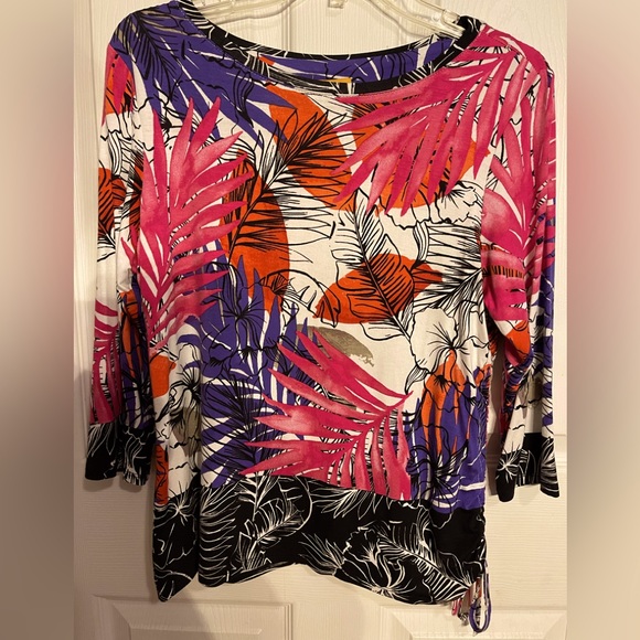 Like new, never worn! Beautiful colors and design with drawstring on one side. Measured 19.5” inches armpit and 24” inches length.