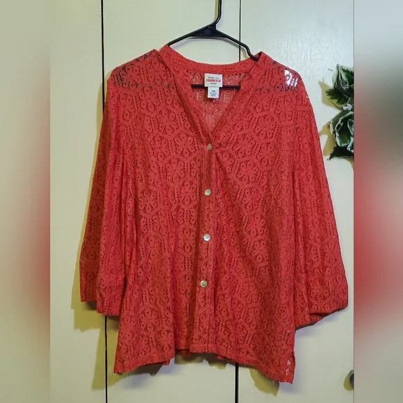 Excellent used condition with no issues found. See through. Shell buttons. Measurements laid flat side to side: