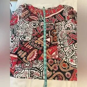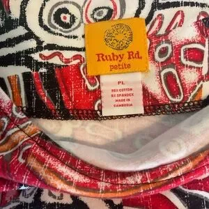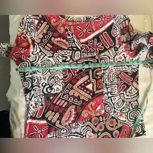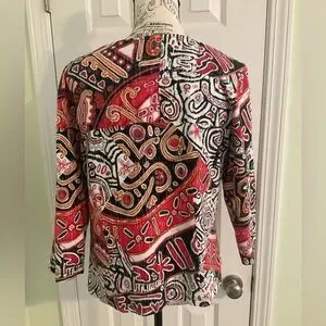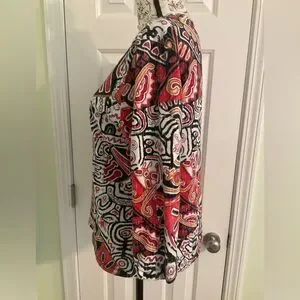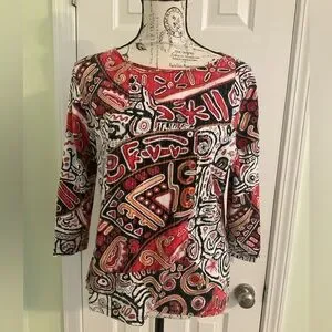 Ruby Rd. Top in black, white red geometric print. This is 3/4 sleeves and so soft to wear.