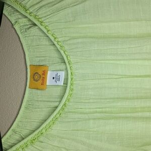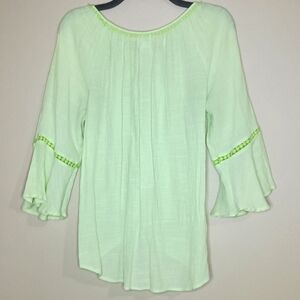 Beautiful Lime Green Ruby Rd. Lightweight Top with Front Tie and Trim Detail on the Neckline and Sleeves. Excellent Pre-loved Condition with no flaws.