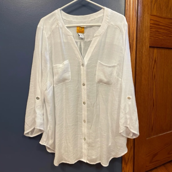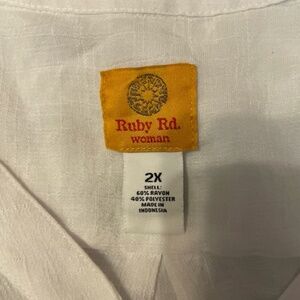 Brand: Ruby Rd. Size: 2X Material: 60% Rayon, 40% Polyester Shoulder to hem: 30 in Pit to pit: 24.25 in Pit to end of sleeve: 13.5 in