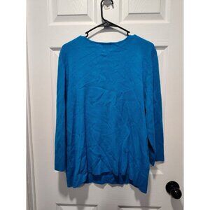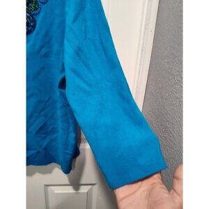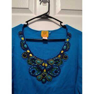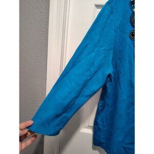 Ruby Rd Top Women 2X Petite Blue Embellished Beaded Sweater Bohemian Stretch
