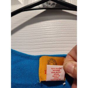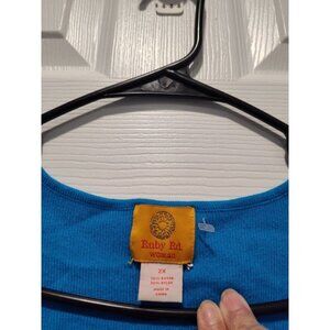 This beautiful Ruby Rd. top is perfect for any Bohemian-loving woman! The turquoise blue fabric with beaded accents and a scoop neckline is a show-stopper. The 3/4 sleeves and casual sleeve type make it versatile for any occasion. It is made of a comfortable and stretchy knit fabric with a ruby character print. This blouse is hand washable and fits regular with a plus size type. It is a great addition to any wardrobe and perfect for all seasons. The collarless design and pullover closure make it easy to wear. This top is solid patterned and has a Bohemian theme. It is made in China and is perfect for women's clothing.