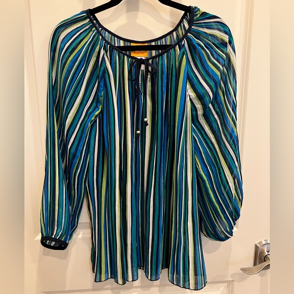 Ruby Rd Sheer Top with Ragland Long Sleeves