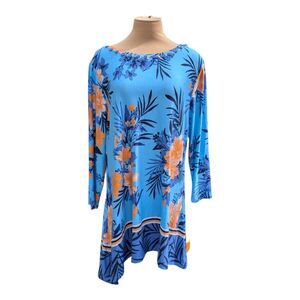Ruby Rd Tropical Floral Print Rayon Blouse 3/4 Sleeves Women's XL Casual New