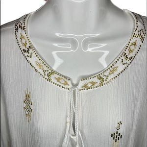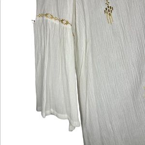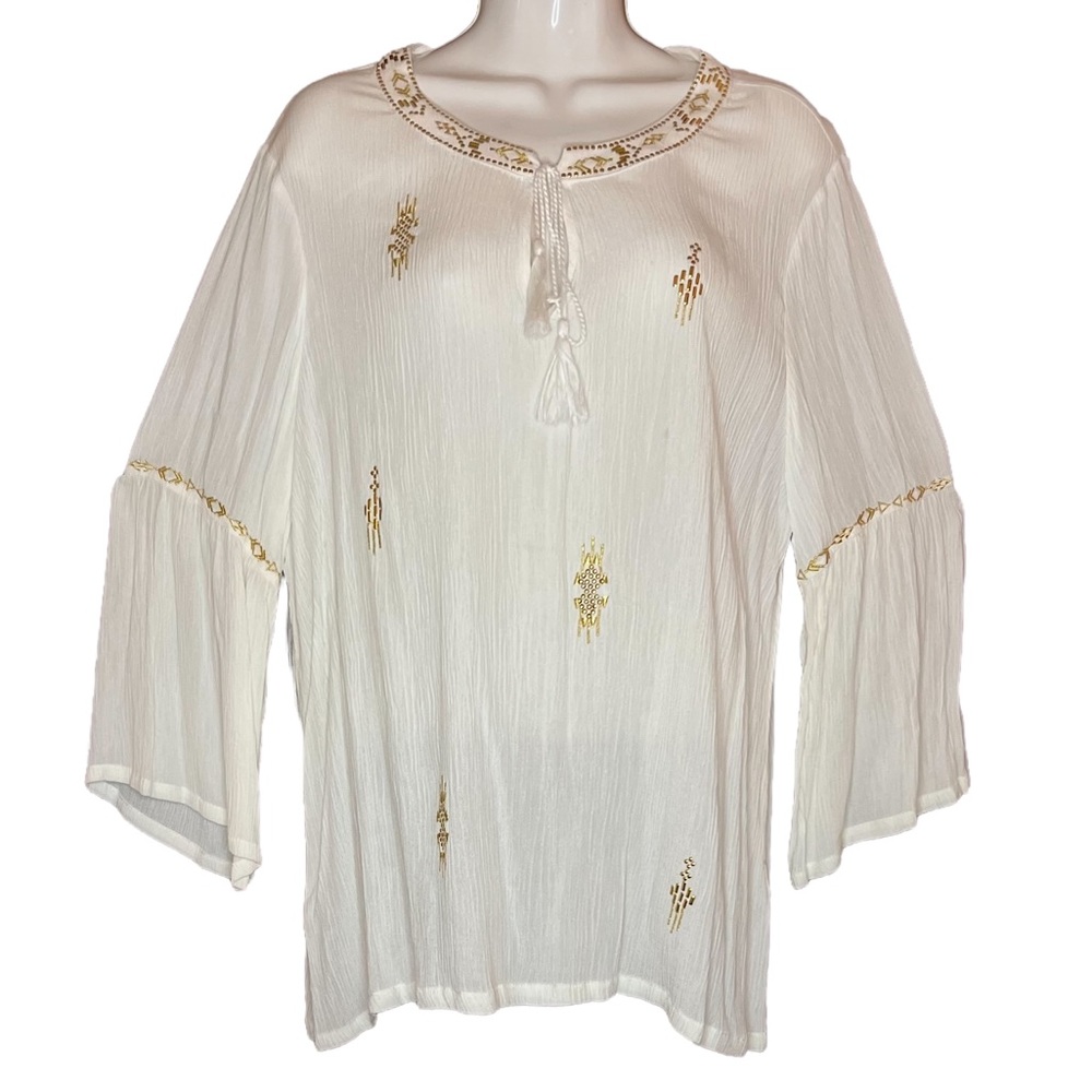 Excellent condition cream w/gold accents tunic, bell sleeves, 100% rayon H