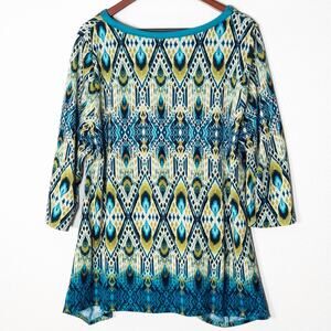 Ruby Rd Tunic Top Long Sleeve Blue Green Paisley Size L Bold Print