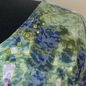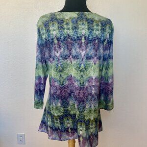 Ruby Rd Tunic top SZ L sheer Rhinestone bling ¾ sleeve Purple Green