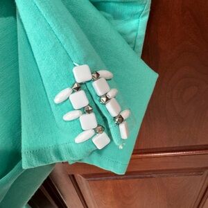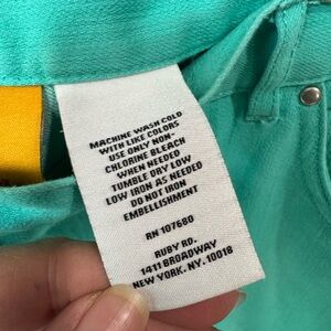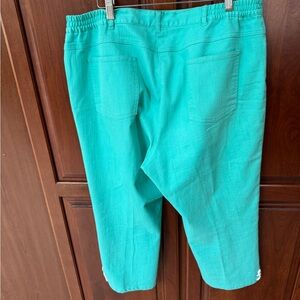 Stylish turquoise capris by Ruby Rd. Comfortable fit. Perfect for casual outings. White beads adorn the slits on the legs. Very cute and fun! Size 16.