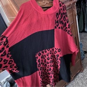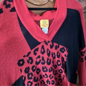 Ruby Rd. V-Neck Sweater - Red and Black Leopard Print