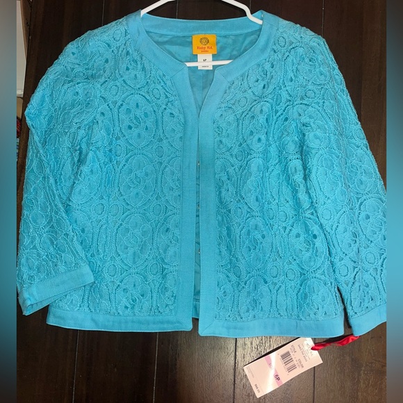 Chic lace top in vibrant blue. Ideal for stylish layering.