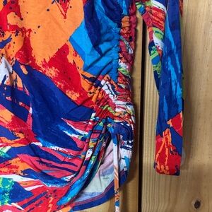 Brighten your look with this vibrant long sleeve top. Features a dynamic multicolor abstract design. Ideal for a bold fashion statement.