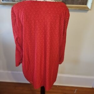 Elegant red top with intricate lace design with tank lining. Ideal for any occasion. Bundle & Save AP
